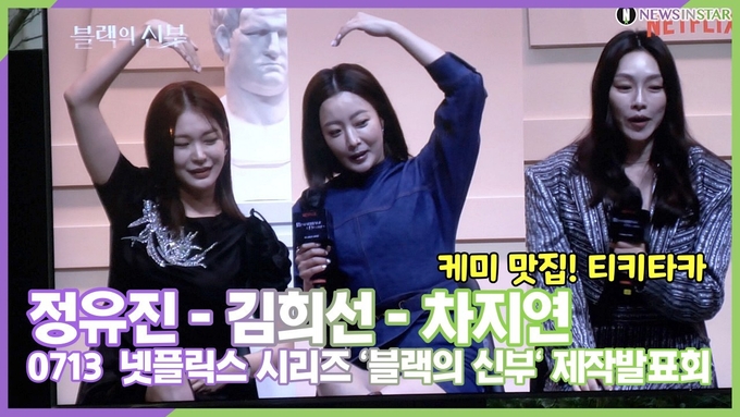 [뉴스인스타 양철수기자] 7월 13일(수) 오전, 서울시 중구 크레스트72에서 넷플릭스 오리지널 시리즈 ‘블랙의 신부’ 제작발표회가 열려 배우 김희선, 이현욱, 정유진, 박훈, 차지연, 김정민 감독이 참석해 녹화 중 케미에 대해 포즈로 말하고 있다.