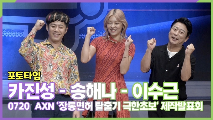 [뉴스인스타 양철수기자] 7월20일(수) 오후, 서울시 마포구 상암동 누리꿈스퀘어에서 AXN 새 예능 '장롱면허 탈출기 극한초보' 제작발표회가 열려 MC 이수근, 송해나, 카진성이 참석해 포토타임을 갖고 있다.