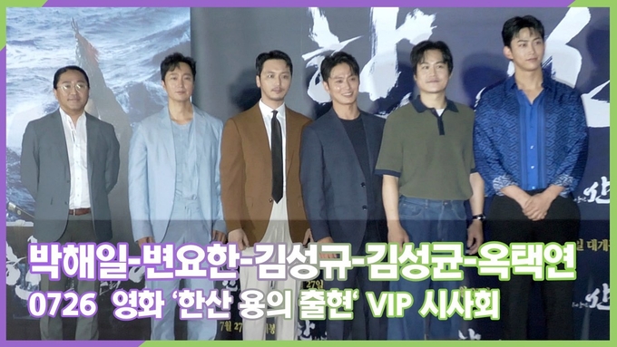 [뉴스인스타 양철수기자] 7월 26일(화) 오후, 서울시 송파구 신청동 롯데시네마 월드타워에서 열린 영화 '한산 : 용의 출현' VIP 시사회에 배우 박해일, 변요한, 김성규, 김성균, 옥택연이 참석해 포토타임을 갖고 있다.