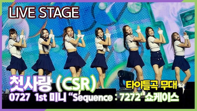 [케이팝인스타 양철수기자] 7월 27일(수) 오후, 서울시 용산구 한남동 블루스퀘어에서 진행되는 그룹 첫사랑(CSR) 첫번째 미니 앨범 'Sequence : 7272' 발매 기념 쇼케이스가 열려 수아, 금희, 시현, 성연, 유나, 두나, 예함이 참석해 x타이틀곡 '첫사랑' 무대를 선보이고 있다.