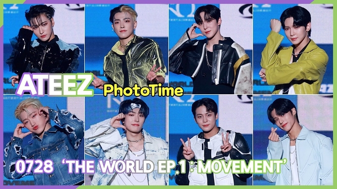 [뉴스인스타 양철수기자] 7월28일(목) 오후, 서울시 광진구 군자동 세종대학교 대양홀에서 진행된 그룹 에이티즈(ATEEZ) 새 앨범 ‘더 월드 에피소드 1 : 무브먼트(THE WORLD EP.1 : MOVEMENT)’ 발매기념 쇼케이스가 열려 홍중, 성화, 윤호, 여상, 산, 민기, 우영, 종호가 참석해 포토타임을 갖고 있다.