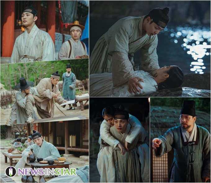이날 공개된 사진 속 유세풍의 총기 잃은 허망한 눈빛이 심상치 않다. 고운 외모에 탁월한 침술까지 겸비해 만인의 사랑을 받던 내의원 스타 유세풍. 그러나 화려한 명성이 무색하게 망연자실 거지꼴이 그에게 찾아온 위기를 짐작게 한다. 그런가 하면 도련님이라면 깜빡 죽는 ‘세풍 바라기’ 만복(안창환 분)은 계지한(김상경 분)이 건넨 반강제 취업(?) 문서에 유세풍의 지장을 찍기 위해 힘을 쓰고 있어 호기심을 자극한다. 기를 쓰고 벗어나려는 유세풍의 필사적인 몸부림이 웃음을 더한다. 특히 이를 흥미롭게 바라보는 계지한의 의미심장한 모습은 계수의원에 불시착한 유세풍의 험난한 적응기를 더욱 궁금하게 한다.