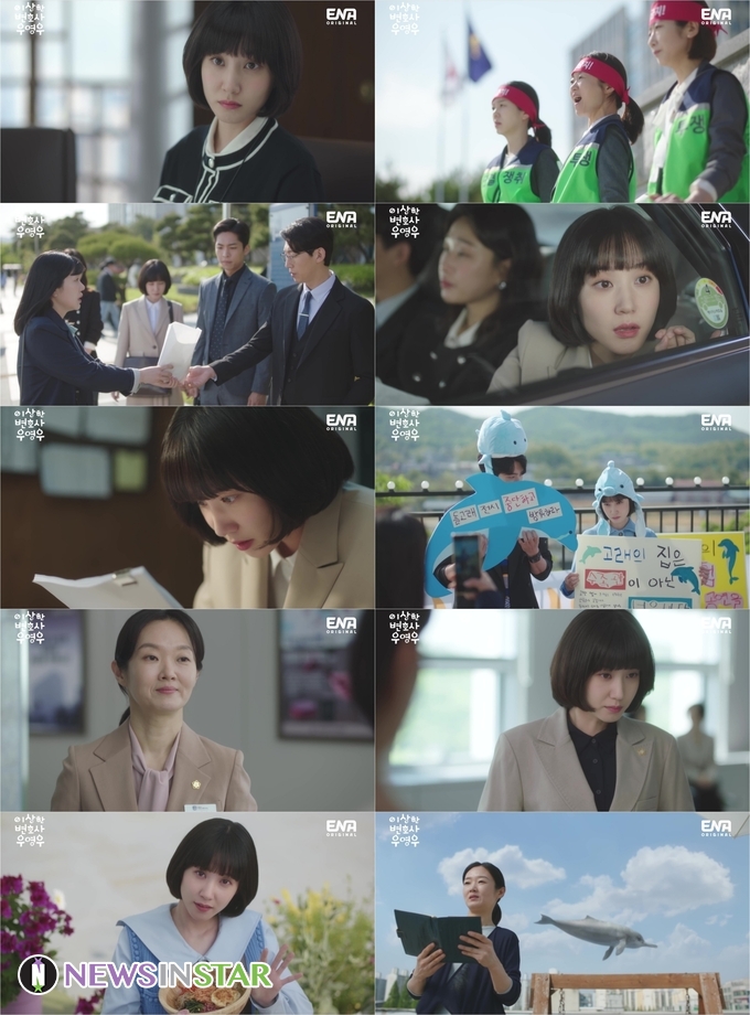 한편 우영우의 변화와 성장이 거듭되는 가운데 ‘고래커플’ 우영우, 이준호(강태오 분)는 기발한 데이트로 웃음과 설렘을 자아냈다. 아직 사귀는 게 아니라는 우영우의 말은 이준호를 또다시 ‘섭섭’하게 만들기도 했다. 그런가 하면 방송 말미, 정명석의 건강에는 이상 신호가 발견되며 다음 이야기에 대한 궁금증을 높였다.