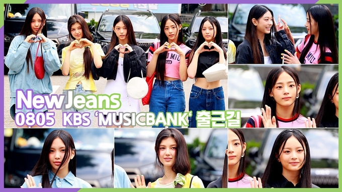 [뉴스인스타 양철수기자] 8월5일(금) 오전, 서울시 영등포구 여의도 KBS 신관 공개홀에서 생방송으로 진행되는 KBS '뮤직뱅크' 출연을 위해 그룹 NewJeans(뉴진스) 민지, 하니, 다니엘, 해린, 혜인이 방송국에 도착해 포즈를 취하고 있다.
