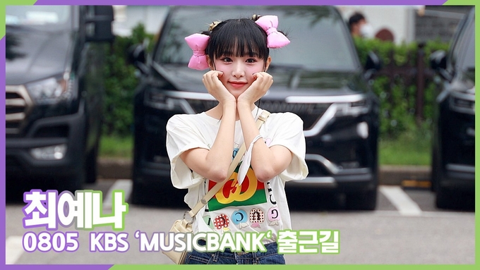 [케이팝인스타 양철수기자] 8월 5일(금) 오전, 서울시 영등포구 여의도 KBS 신관 공개홀에서 열린 KBS '뮤직뱅크' 생방송에 참석하기 위해 최예나가 방송국에 도착해 포즈를 취하고 있다.