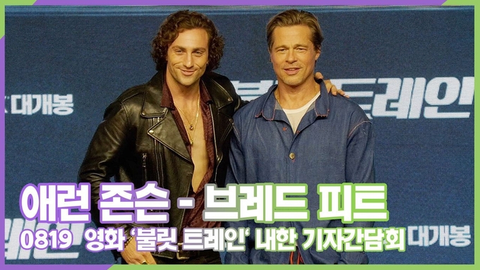 [뉴스인스타 양철수기자] 8월 19일(금) 오전, 서울시 영등포구 여의도 콘래드 호텔에서 진행된 영화 '불릿 트레인'(감독 데이빗 레이치) 내한 기자간담회에 배우 애런 존슨, 브레드 피트가 참석해 포즈를 취하고 있다.