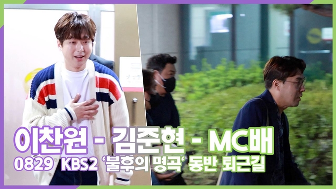 [뉴스인스타 양철수기자] 8월29일(월) 오후, 서울시 영등포구 여의도 KBS 신관 공개홀에서 진행된 KBS 2TV '불후의 명곡' 녹화를 마치고 MC 이찬원, 김준현, MC배가 방송국을 나서고 있다.