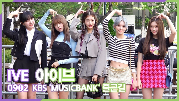 [뉴스인스타 양철수기자] 9월2일(금) 오전, 서울시 영등포구 여의도 KBS 공개홀에서 생방송으로 진행되는 KBS '뮤직뱅크' 리허설에 참석하기 위해 그룹 IVE(아이브) 가을, 레이, 원영, 리즈, 이서가 방송국에 도착해 포즈를 취하고 있다.