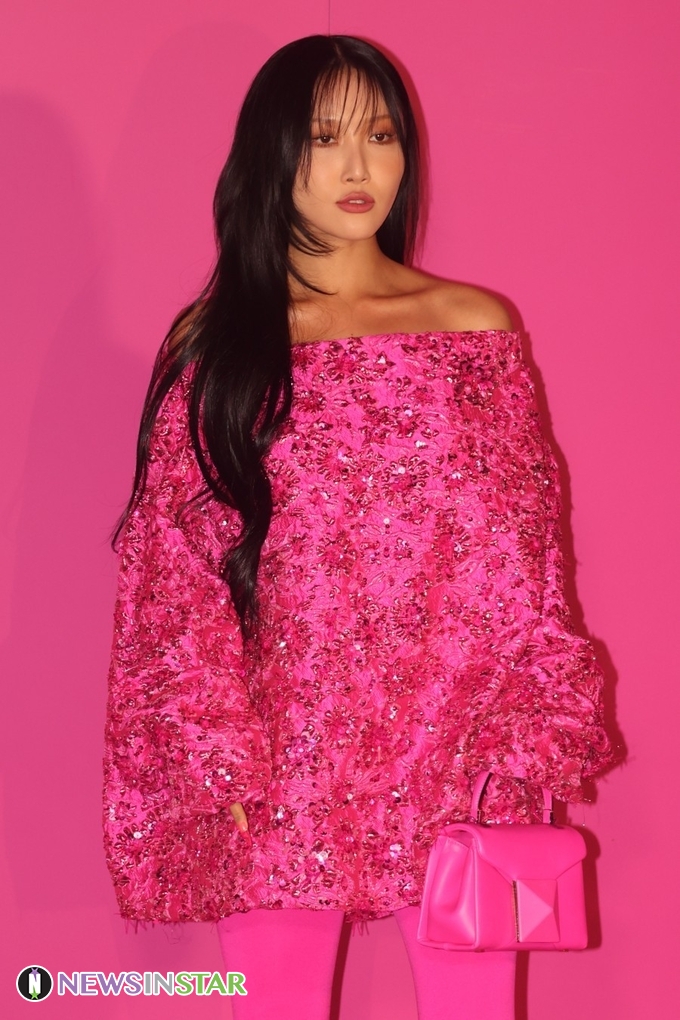 [뉴스인스타 양철수기자] 9월21일(수) 오후, 서울시 서초구 서울 웨이브 아트센터에서 이탈리아 럭셔리 오트 쿠틔르 브랜드 메종 발렌티노의 2022년 가을/겨울 컬렉션 '발렌티노 PINK PP' 출시를 기념하여 런칭 이벤트를 개최해 마마무 화사가 참석해 포즈를 취하고 있다.