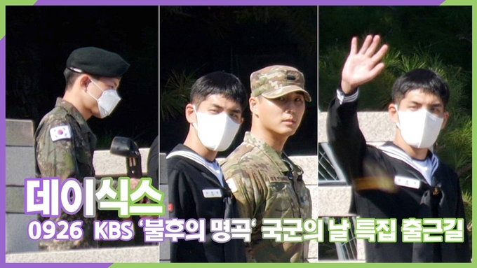 [뉴스인스타 양철수기자] 9월26일(월) 오전, 서울시 용산구 전쟁기념관에서 진행되는 KBS 2TV '불후의 명곡' 국군의 날 특집 녹화를 위해 밴드 데이식스(DAY6) 유닛 DAY6 Even of Day(데이식스 이븐 오브 데이) 영케이, 원필, 도운이 방송국에 도착했다.