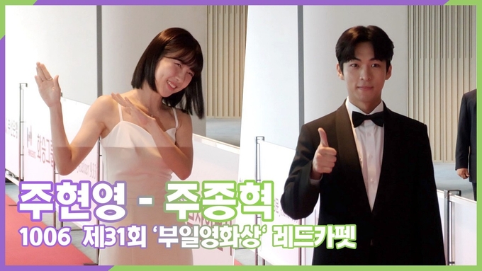 [뉴스인스타 양철수기자] 10월6일(목) 오후, 부산광역시 해운대구 시그니엘 부산 그랜드볼룸에서 제31회 '부일영화상(2022)' 레드카펫 행사가 열려 배우 주현영, 주종혁이 포토월에서 포즈를 취하고 있다.