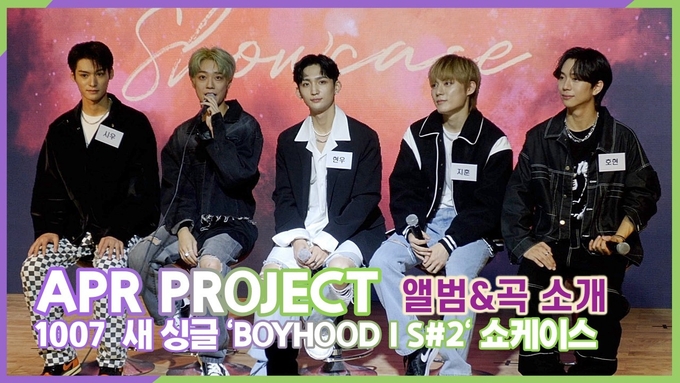 [뉴스인스타 양철수기자] 10월7일(금) 오후, 서울시 강남구 신사동 바나나홀에서 그룹 APR PROJECT(에이피알 프로젝트) 두 번째 선공개 앨범 'BOYHOOD I S#2' 미디어 쇼케이스가 열려 지훈, 현우, 시우, 강민, 호연이 참석해 앨범 소개를 하고 있다.