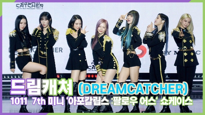 [뉴스인스타 양철수기자] 10월 11일(화) 오후, 서울시 광진구 건국대학교 새천년 대공연장에서 그룹 드림캐쳐(DREAMCATCHER)의 일곱 번째 미니앨범 '아포칼립스 : 팔로우 어스(Apocalypse : Follow us)' 발매기념 미디어 쇼케이스가 열려 지유, 수아, 시연, 유현, 다미, 한동, 가현이 포즈를 취하고 있다.