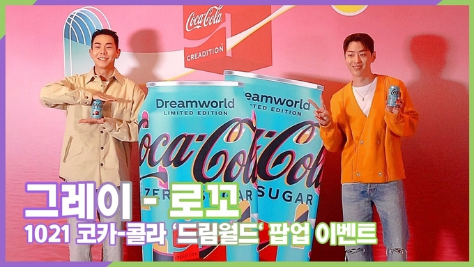 [케이팝인스타 양철수기자] 10월 21일(금) 오전, 서울시 마포구 동교동 홍대와이즈파크에서 열린 코카-콜라 크리에디션 X 아르떼뮤지엄 '드림월드' 팝업 프리오프닝데이 행사에 그레이, 로꼬가 참석해 포즈를 취하고 있다.