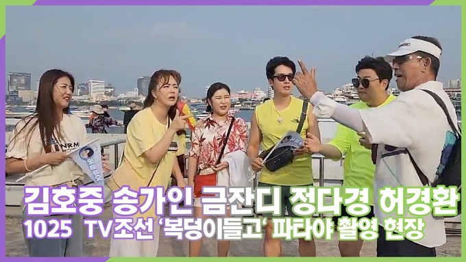[뉴스인스타 양철수기자] 10월25일(화) 오후, 김호중,송가인,허경환, 금잔디, 정다경이 TV조선 '복덩이 들고' 태국 파타야에서 촬영을 하고 있다.