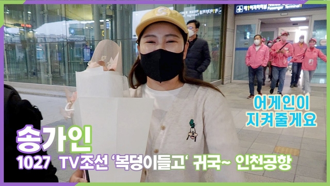 [뉴스인스타 양철수기자] 10월27일(목) 오전, 인천광역시 중구 운서동 인천국제공항 제1터미널에서 가수 송가인이 TV조선 '복덩이 들고' 촬영을 마치고 태국에서 입국하고 있다.