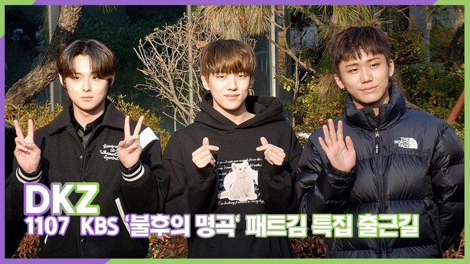 [뉴스인스타 양철수기자] 11월 7일(월) 오전, 서울시 영등포구 여의도 KBS 신관 공개홀에서 진행되는 KBS '불후의 명곡' 녹화를 위해 그룹 DKZ 경윤, 문익, 재찬, 종형, 세현, 민규, 기석이 방송국에 도착해 포토타임을 갖고 있다.