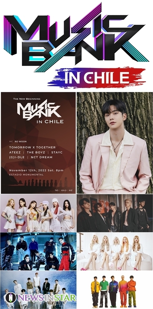 MC로운이 이끄는 ‘뮤직뱅크 인 칠레’을 빛낼 아티스트에는 스테이씨, 투모로우바이투게더, 에이티즈, (여자)아이들, 더 보이즈, NCT DREAM으로 총 6팀의 특급라인업이 완성됐다. 국내 대표 K-POP 아이돌 그룹이 총출동하는 만큼 4만 7천여 관중이 가득 메울 최대 규모 케이팝 페스티벌에 대한 기대가 한층 높아지고 있다.
