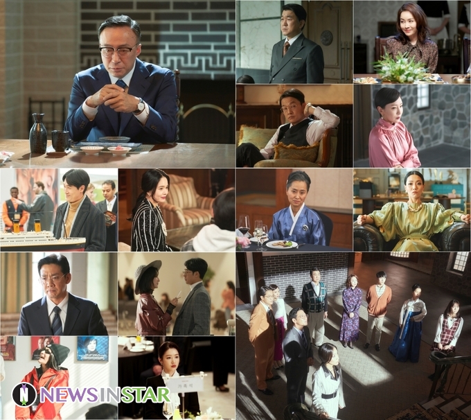 이날 공개된 사진에는 상상 초월의 승계 싸움에 참전한 인물들의 모습이 담겼다. 대한민국 최상위 재벌 순양가는 모두 진양철(이성민 분)과 혈연으로, 혹은 모종의 거래로 얽힌 인물들. 진양철의 끝없는 욕망 만큼은 꼭 빼닮은 이들의 강렬한 아우라가 시선을 강탈한다. 윤제문은 넘치는 의욕에 달리는 실력을 가진 못 미더운 장남 ‘진영기’를, 김정난은 그의 아내이자 명동 현금 부자의 딸 ‘손정래’를 맡았다. 시작된 승계 싸움 속 위태로운 입지를 가진 이들 부부가 어떤 움직임을 보여줄지 호기심을 자극한다. 진양철의 차남 ‘진동기’와, 그의 명문가 출신 아내 ‘유지나’는 각각 조한철과 서재희가 연기한다. 사진 속 예사롭지 않은 눈빛 만큼 언제고 진영기를 끌어내릴 준비가 되어 있는 이들 부부의 반란에 눈길이 쏠린다.