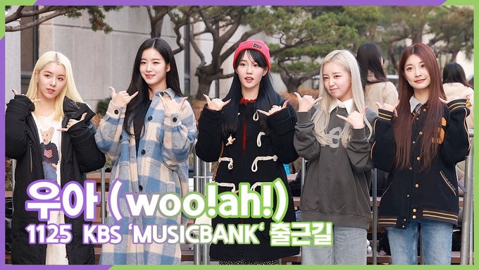 [뉴스인스타 양철수기자] 11월 25일(금) 오후, 서울시 영등포구 여의도 KBS 신관 공개홀에서 진행되는 KBS ‘뮤직뱅크’ 생방송 출연을 위해 그룹 우아(woo!ah!) 나나, 우연, 소라, 루시, 민서가 포토타임에 포즈를 취하고 있다.