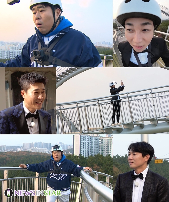 그러나 마치 롤러코스터 위를 걷는 듯한 ‘스릴 끝판왕’ 코스가 등장해 들떠 있던 멤버들을 경악케 한다. 특히 아찔한 높이의 ‘이곳’으로 간 문세윤은 자신만만하게 길을 오르며 허세를 폭발시키는 것도 잠시, 겁에 질린 탓에 점점 혼이 빠져나간다고. 문세윤은 자신의 체중을 이기지 못하고 흔들리는 길 때문에 공포에 휩싸인 채 외로운 사투를 벌인다.