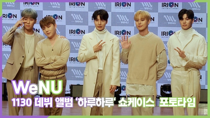 [뉴스인스타 양철수기자] 11월30일(수) 오후, 서울시 강남구 청담동 일지아트홀에서 그룹 WeNU(위앤유)의 데뷔 앨범 '하루하루' 발매 기념 쇼케이스가 열려 한선우, 정이든, 윤희찬, 지성한, 박찬효가 포토타임에 포즈를 취하고 있다.