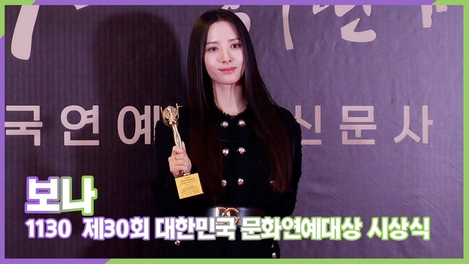 [케이팝인스타 양철수기자] 11월 30일(화) 오후, 서울시 영등포구 여의도 63빌딩에서 ‘제30회 대한민국 문화연예대상(30th Korea Culture Entertainment Awards)’ 시상식이 열려 가수 겸 배우 보나가 포토타임을 갖고 있다.