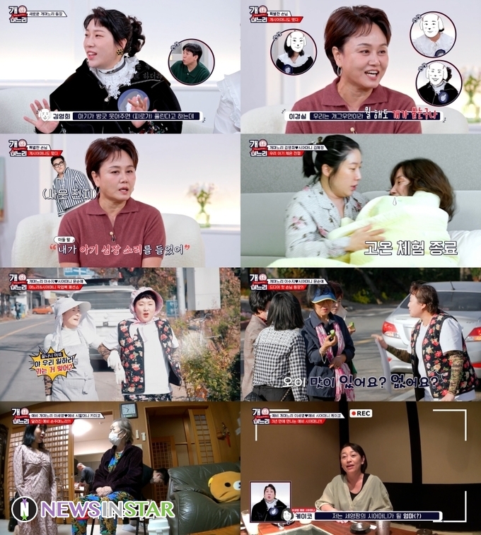이날 새로운 ‘개며느리’로 김영희가 합류했다. 10세 연하 남편과 결혼해 화제가 됐던 김영희는 최근 득녀했다. 아늑한 신혼집과 함께 딸 해서 양을 공개한 김영희는 아이 체온을 두고 시어머니와 갈등을 보이는 듯 하면서도, 이른바 ‘역지사지’ 전법으로 어머니에게 ‘아이 체험’을 하게 하는 파격적인 모습을 보이며 격 없는 고부 관계를 보였다.
