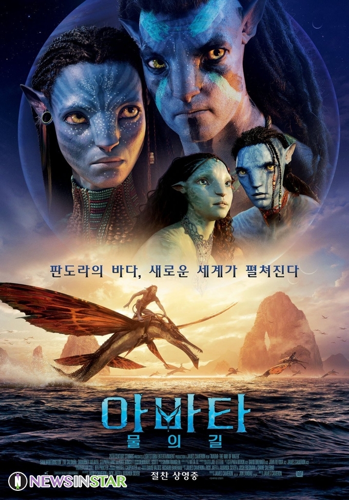 영화 <아바타: 물의 길>이 개봉 5일 차에 200만 관객을 돌파하며 흥행에 박차를 가하고 있다. 2009년 혁신적인 기술력으로 신드롬을 일으키며 월드와이드 역대 흥행 순위 1위를 기록하고 있는 <아바타>의 후속편 <아바타: 물의 길>은 전편에 이어 제임스 카메론 감독이 13년 만에 선보이는 영화로, 판도라 행성에서 ‘제이크 설리’와 ‘네이티리’가 이룬 가족이 겪게 되는 무자비한 위협과 살아남기 위해 떠나야 하는 긴 여정과 전투, 그리고 견뎌내야 할 상처에 대한 이야기이다.