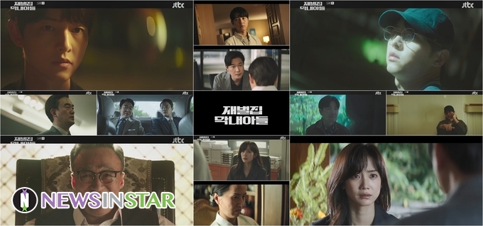 JTBC 금토일드라마 ‘재벌집 막내아들’(연출 정대윤∙김상호, 극본 김태희∙장은재, 제작 SLL∙래몽래인∙재벌집막내아들문화산업전문회사) 13, 14회에서는 진양철(이성민 분)의 죽음이 불러온 순양가의 지분 전쟁이 그려졌다. 진양철로부터 무엇도 상속받지 못한 데 이어 이항재(정희태 분)의 배신으로 후계자의 위치를 빼앗기는 듯했던 진도준(송중기 분). 그는 순양금융지주회사의 설립을 무산시키는 대담한 작전으로 순양에 치명타를 입히는 데 성공했다. 여기에 마침내 모습을 드러낸 진양철의 진짜 유산, 순양마이크로의 존재는 전생과 이번 생의 연결고리를 보여주며 강렬한 충격을 남겼다.