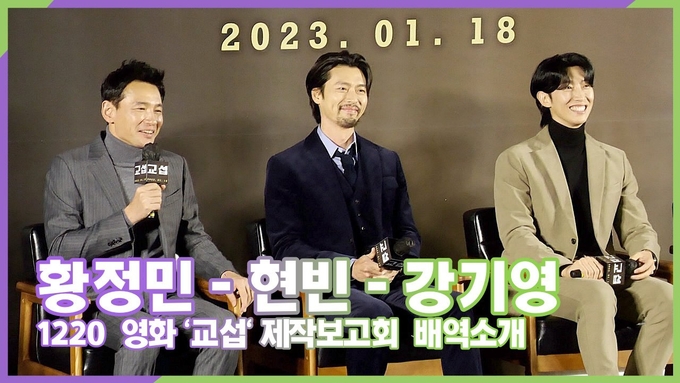 [뉴스인스타 양철수기자] 12월 20일(화) 오후, 서울시 성동구 메가박스 성수에서 영화 '교섭(임순례 감독)' 제작보고회가 열려 배우 황정민, 현빈, 강기영, 임순례 감독이 참석해 배역 소개와 인사말을 하고 있다.