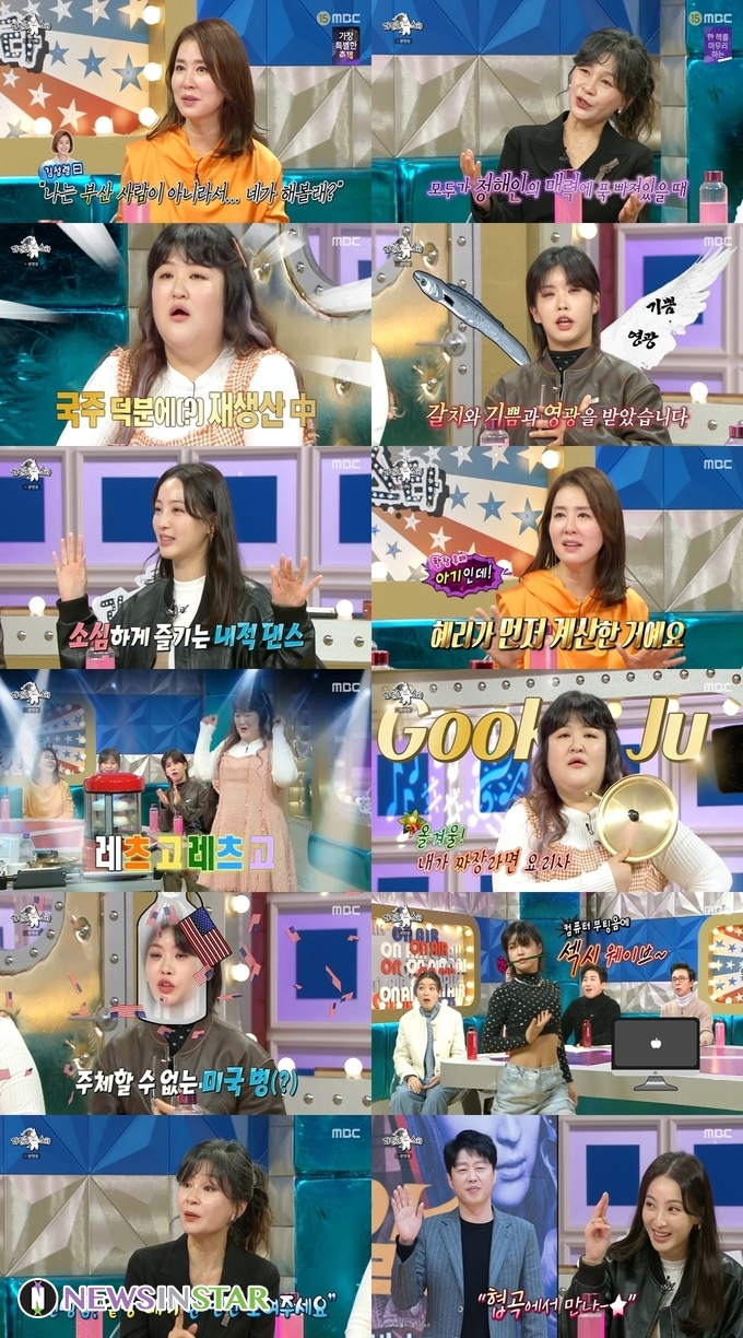‘라스’ 최다 출연 여성 출연자인 이국주는 타율 높은 입담과 예능감으로 ‘라스’ MC들과 게스트들을 사로잡았다. 그는 최근 ‘주방용품계 제니’로 주목받고 있다며 미니 밥솥, 짜장라면냄비, 깨갈이 등 사용했다 하면 완판됐다고 밝혔다. 또 이국주는 겨울 저격 호빵 기계부터 따끈따끈 신상 맛집 줄서기용 의자까지 신박한 애장템을 ‘라스’에서 전격 공개해 녹화장 텐션을 끌어올렸다.