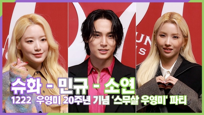 [뉴스인스타 양철수기자] 12월 22일(목) 오후, 서울시 성동구 레이어 57에서 글로벌 럭셔리 브랜드 우영미(WOOYOUNGMI)의 브랜드 20주년을 앞두고 열린 ‘스무살 우영미’ 파티에 그룹 세븐틴 민규, (여자)아이들 소연, 슈화가 참석해 포토타임을 갖고 있다.