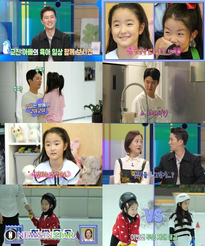 두 딸의 아빠 인교진은 “첫째 하은, 둘째 소은이가 서로를 향한 질투가 엄청나다”라고 밝힌다. 이어 “소은이가 언니를 따라하고 싶어하기 때문에 질투심이 생긴다. 매일 살얼음판을 걷듯이 눈치 본다”라고 고민을 털어놔 궁금증을 유발한다.