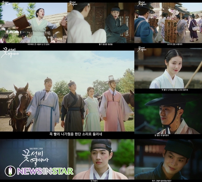 특히 ‘꽃선비 열애사’의 ‘스페셜 티저’는 35초간 설렘과 코믹, 미스터리까지 팡팡 터지는 무한 재미를 선사했다. 이화원의 객주 윤단오(신예은)가 벌인 고군분투 하숙생 모집기와 꽃도령 3인방의 티키타카가 담겨 봄바람 같은 설렘을 유발한 것. 강산(려운)을 보자마자 자빠진 윤단오와 이화원에서 티격태격하는 강산과 김시열(강훈), 정유하(정건주)의 모습이 ‘풋풋한 네 남녀’가 얽히고설킨 ‘신감각 청춘 사극’이 안겨줄 설렘에 대한 기대감을 높였다.