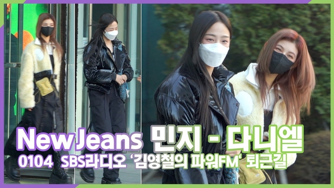 [뉴스인스타 양철수기자] 1월4일(수) 오전, 서울시 양천구 목동 SBS 방송센터에서 진행된 SBS라디오 '김영철의 파워FM’ 출연을 마치고 그룹 뉴진스(NewJeans) 민지, 다니엘이 방송국을 나서고 있다.