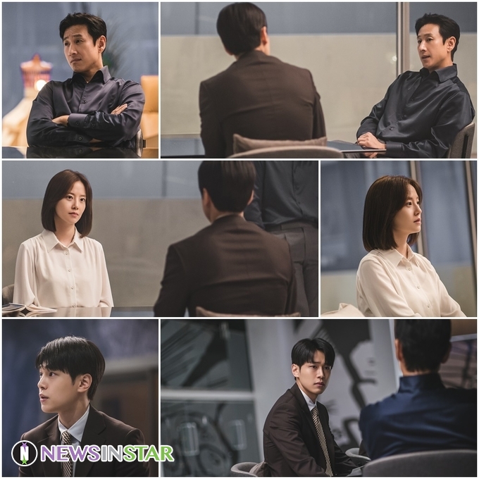 이와 관련 13일(오늘) 밤 10시 방송되는 ‘법쩐’ 3회에서는 이선균과 문채원, 강유석이 한 프레임에 담기는 ‘최초의 단체샷’이 공개돼 흥미를 높인다. 극중 은용의 초호화 펜트하우스에 박준경과 장태춘이 들어선 장면. 장태춘은 선배 검사였던 박준경을 보자마자 자신의 기수까지 밝혀가며 깍듯하게 인사하지만, 박준경은 왜인지 싸늘한 눈빛으로 장태춘을 뚫어져라 바라본다.
