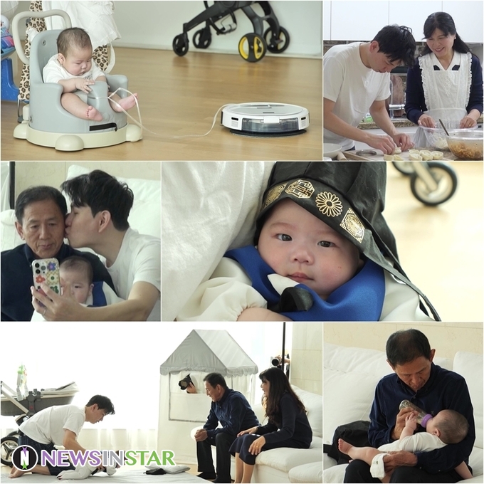그런가 하면, 준범의 할머니, 할아버지가 제이쓴에게 “너만 애 키워? 유난 떨기는”이라며 일침을 가한다. 할머니가 준범을 부르자 제이쓴이 “조용히 해. 자잖아”라며 부모님 앞에서 과도한 준범 사랑을 보인 것. 이에 할머니-할아버지가 제이쓴에게 팩트 폭격을 가해 웃음을 선사한다. 한편, 제이쓴은 아버지의 사랑에 감동의 눈물을 흘린다. 할아버지는 “제이쓴이 어렸을 때 자는 모습만 봐도 행복했다”며 제이쓴의 어린시절을 회상하며 속마음을 드러낸 것. 제이쓴은 평소 무뚝뚝한 아버지의 속마음에 만둣국을 하다 말고 돌아서서 오열을 참지 못하며 눈물을 훔쳐 보는 이들을 뭉클하게 만든다.
