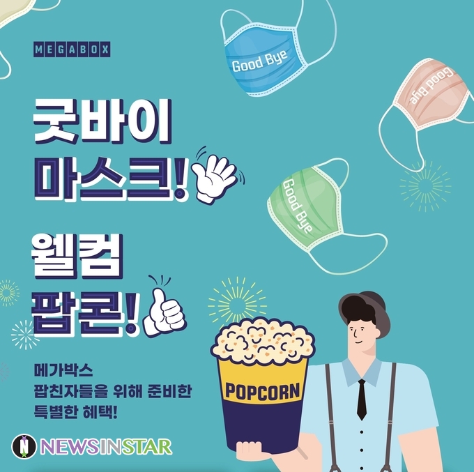 메가박스(대표 홍정인)는 27개월간 이어져 왔던 극장 내 마스크 착용 의무 해제를 맞아 이를 기념하기 위해 ‘굿바이 마스크, 웰컴 팝콘!’ 이벤트를 준비했다고 31일 밝혔다.