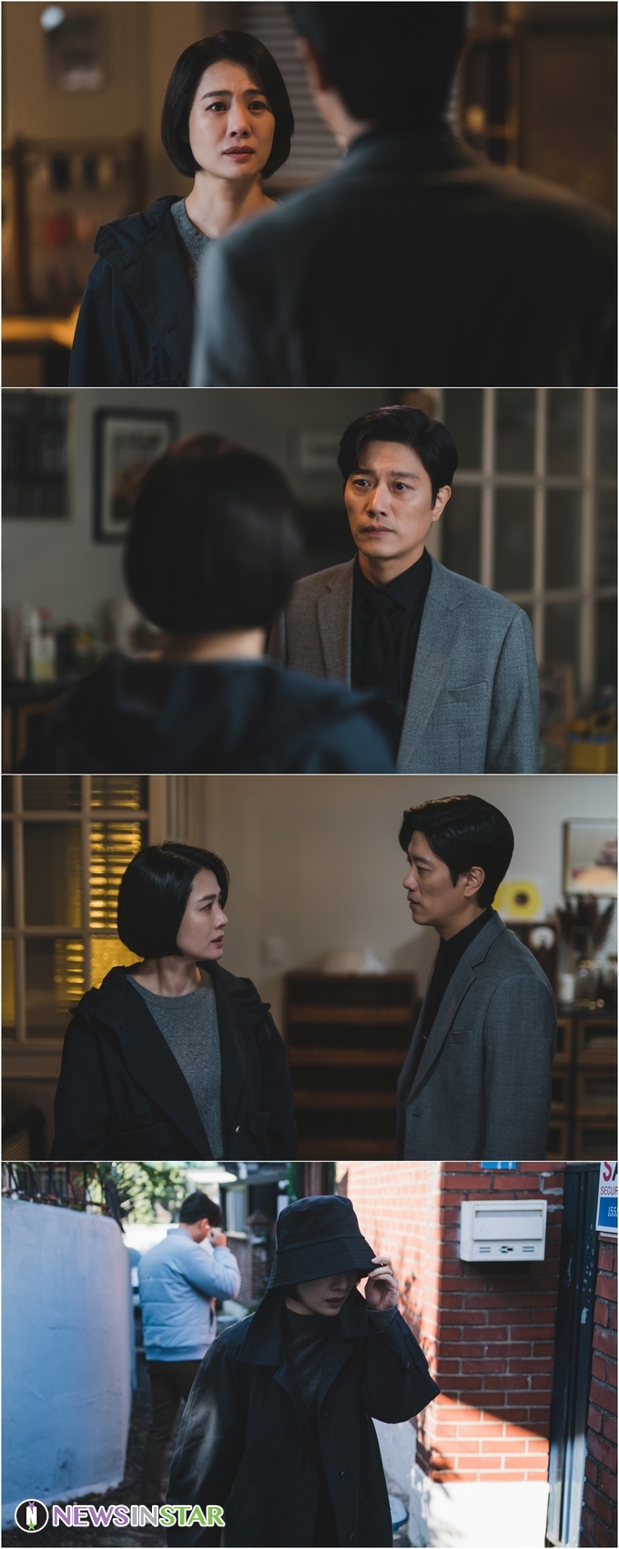 그런 가운데 공개된 사진 속, 의심과 비밀로 둘러싸인 두 사람의 분위기가 사뭇 달라져 있다. 김수빈에게 들은 ‘그날 밤’ 진실을 추궁하는 김혜주의 싸늘한 눈빛에도, 남중도는 입을 꾹 다문 채 아내를 바라만 보고 있어 궁금증을 더한다. 이들 부부의 갈등과 대립은 점점 극으로 치닫는 상황. 과연 파국으로 접어든 김혜주와 남중도가 진실을 마주하고 관계를 회복할 수 있을지 귀추가 주목된다. 여기에 누군가 알아볼세라 모자로 얼굴을 가리고, 황급히 어디론가 향하는 김혜주의 모습도 심상치 않다. 앞선 예고편을 통해 진승희(류현경 분)가 이유신(길해연 분)에게 “내가 인터넷에 폭로했어. 이제 곧 다 끝날 거야”라고 밝힌 바 있어, 김혜주에게 불어닥칠 또 한 번의 위기를 짐작게 한다.
