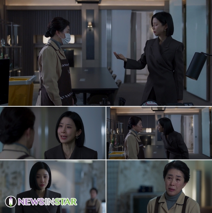 지난 12일 방송된 JTBC 토일드라마 ‘대행사’(연출 이창민/극본 송수한/제공 SLL/제작 하우픽쳐스, 드라마하우스 스튜디오) 12회에서 고아인(이보영)은 자신의 사무실을 청소하는 아주머니가 7살 때 버리고 간 엄마 서은자(김미경)란 사실을 알게 됐다. 헤어졌던 날, 엄마에게 줬던 팔찌를 알아본 것. 예상치 못했던 35년 만의 재회에도 “미안하다”는 말 밖에 못하는 엄마에게 고아인은 그동안의 원망을 모진 말로 쏟아냈다. 또한, “죽을까 무서웠다. 자식이 목숨보다 소중한 게 엄마인데, 나는 내가 더 소중했나 보다. 용서하지 말라”는 엄마를 두고 매몰차게 돌아섰다.