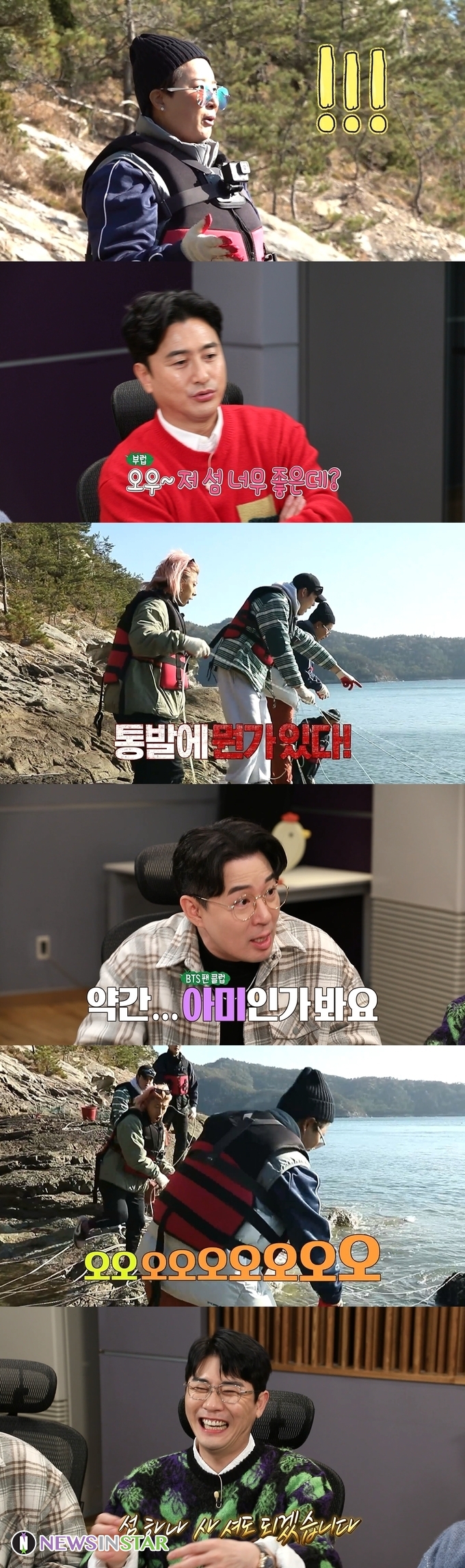 또한, 통발을 확인하던 중 이들은 의문의 생명체를 마주한다. 방탄소년단(BTS)과 그들의 팬덤 ‘아미(ARMY)’의 상징색인 보라색을 띠고 있는 그 생명체를 보고 붐, 안정환과 ‘빽토커’ 영탁, 조준호는 “아미 해산물”이라고 별명을 지어준다. 과연 바다까지 점령한 보랏빛의 정체는 무엇일지 궁금해진다.
