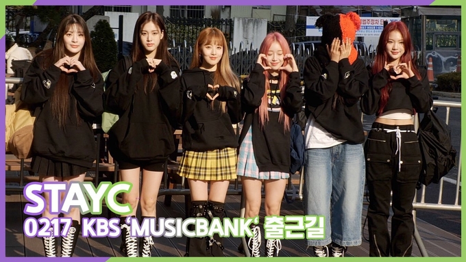 [뉴스인스타 양철수기자] 2월 17일(금) 오후, 서울시 영등포구 여의도 KBS 신관 공개홀에서 진행되는 KBS '뮤직뱅크' 리허설을 위해 그룹 스테이씨(STAYC) 수민, 시은, 아이사, 세은, 윤, 재이가 방송국에 도착해 포즈를 취하고 있다.