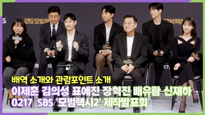[뉴스인스타 양철수기자] 2월 17일(금) 오후, 서울시 양천구 목동 SBS 방송센터에서 SBS 새 금토드라마 '모범택시2' 제작발표회가 열려 배우 이제훈, 김의성, 표예진, 장혁진, 배유람, 신재하가 참석해 배역 소개와 관람포인트를 설명하고 있다.