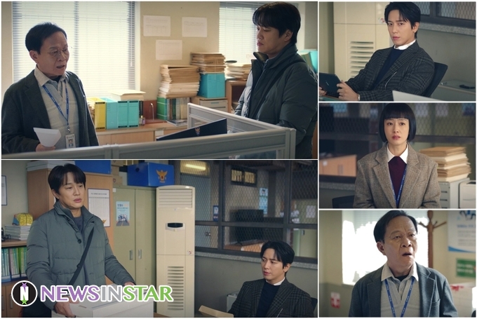이와 관련 차태현이 사표를 제출하는 충격적인 사태가 발생한 가운데 정용화-곽선영-우현이 각각 다른 ‘3인 3색 반응’을 드러낸 장면이 포착돼 시선을 끈다. 극중 금명세(차태현)가 피치 못할 사유로 김계장(우현)에게 사직서를 전달하는 장면. 사표를 낸 금명세가 시무룩한 표정을 짓고 있자, 신하루(정용화)는 반신반의하며 멀뚱한 눈망울로 그 상황을 지켜보고 설소정(곽선영)은 당황스러움을, 김계장(우현)은 어이없음을 내비친다.