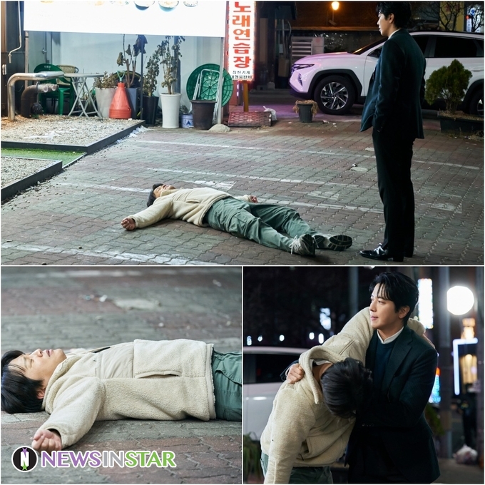 이와 관련 20일(오늘) 방송될 13회에서는 정용화-차태현이 음식점 앞에서 각각 서 있고, 뻗은 상태로 ‘극단적 대치’를 이룬 장면이 담긴다. 극중 금명세(차태현)가 술에 취한 채 땅바닥에 누워있고, 그 모습을 신하루(정용화)가 바라보는 장면. 금명세는 세상 편한 표정으로 바닥에 대자로 드러누워 있는 반면, 신하루는 양복 주머니에 손을 넣은 채 난감한 표정으로 금명세를 내려다본다.
