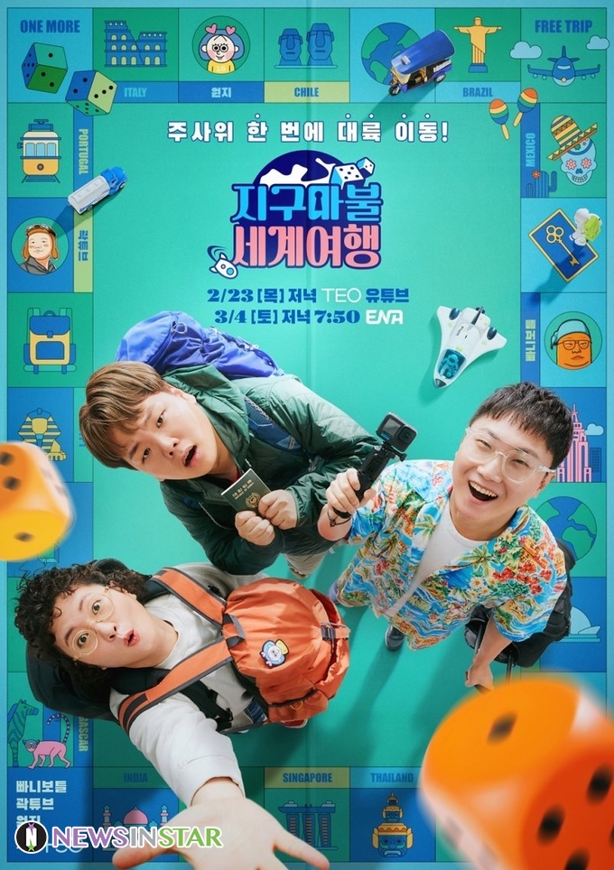 오늘(4일) 첫 방송되는 ENA ‘주사위 한 번에 대륙이동-지구마불 세계여행’(연출 김태호 김훈범 작가 최혜정, 이하 ‘지구마불 세계여행’)은 여행 크리에이터 3대장 빠니보틀(빠니보틀 Pani Bottle), 원지(원지의 하루), 곽튜브(곽튜브 KWAKTUBE)가 직접 설계한 부루마불 게임으로 세계여행을 떠나는 예능 프로그램이다. 이들은 오직 자신들이 직접 던진 주사위 숫자로 여행지를 결정해 랜덤 세계일주를 떠난다.