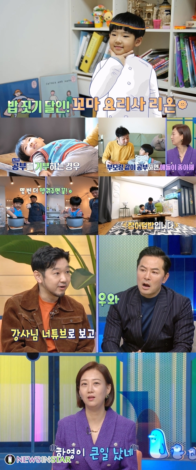 리온은 꼬마 요리사로 변신해 제 몫을 톡톡히 한다. 리온이는 고사리손으로 능숙하게 쌀을 씻고, 물양까지 정확하게 맞춰 육아 반상회 모두를 감탄하게 한다고 해 본방사수 욕구를 자극한다 .