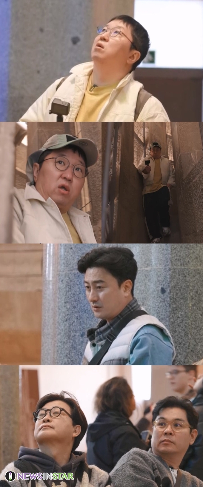 이어 폭이 좁은 데다 끝도 보이지 않는 계단까지 등장해 ‘뭉뜬즈’ 멤버들을 난처하게 한다. 안정환이 “형돈이 너 좀 더 살쪘으면 여기 못 내려갈 뻔했다”라며 정형돈을 걱정하자, 정형돈은 “그나마 살 좀 빼서 내려간다”라고 쿨하게 인정하며 웃음을 자아낸다.