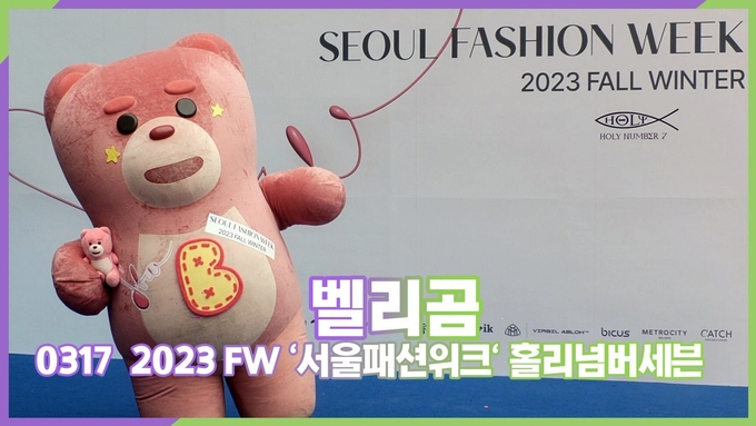[뉴스인스타 양철수기자] 3월 17일(금) 오후, 서울시 동대문DDP에서 진행된 2023 FW '서울패션위크' 홀리넘버세븐(Holy Number 7) 포토월에 벨리곰이 참석해 포즈를 취하고 있다.